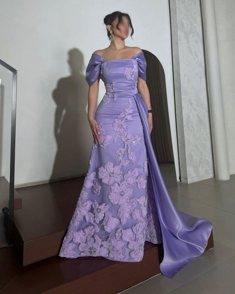 تميّزي بإطلالة ساحرة مع هذا الفستان البنفسجي المصمم بذوق راقٍ وفخم. يأتي بقصة ضيّقة تبرز جمال القوام، مع أكمام منفوخة تضيف لمسة ملكية.