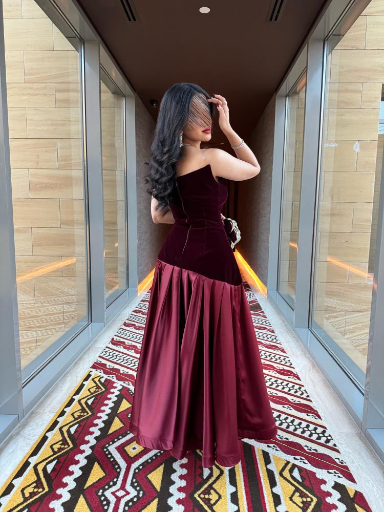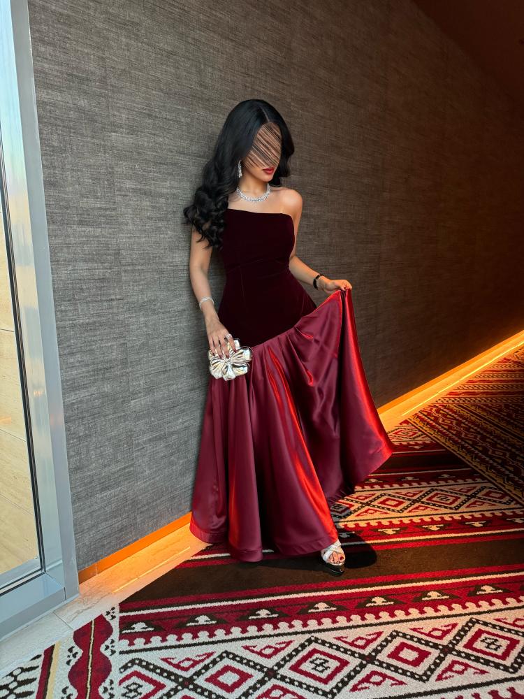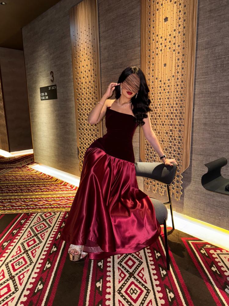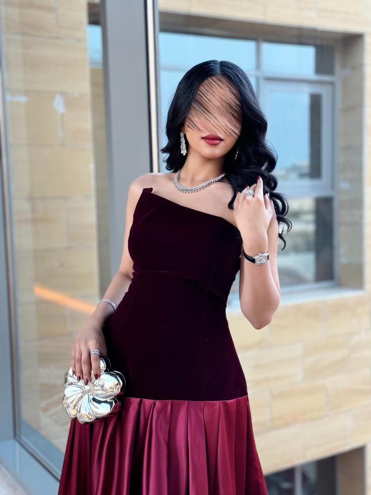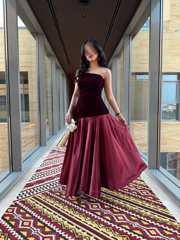 هذا الفستان الراقي بلونه العنابي العميق يعكس الأناقة والفخامة في كل تفاصيله، وهو مثالي لإطلالة مميزة في المناسبات الفاخرة.